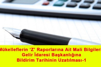 Mükelleflerin ‘Z’ Raporlarına Ait Mali Bilgilerin Gelir İdaresi Başkanlığına Bildirim Tarihinin Uzatılması-1